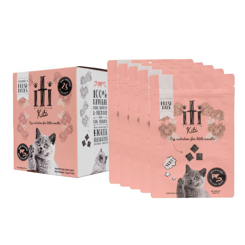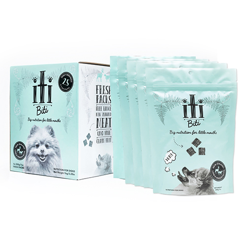イティのエアドライフードやトリーツは鮮度を保つため小包装され、エージレス(酸化防止剤)が封入されています。