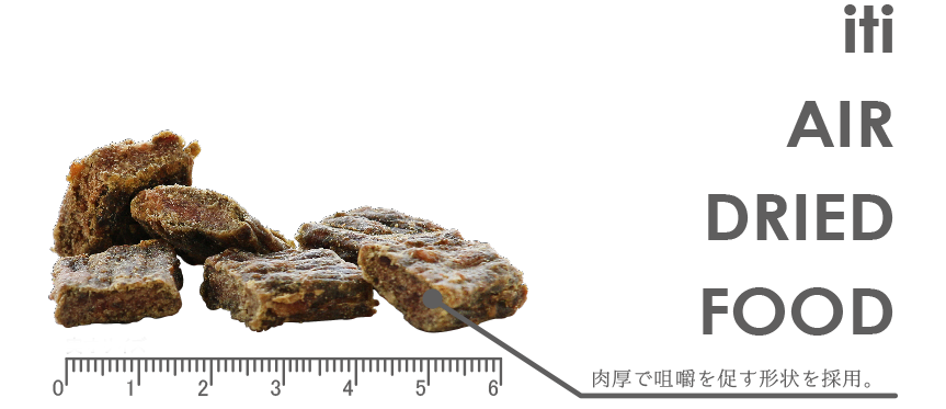 肉厚で豊富な水分量、咀嚼を促す形状を採用したエアドライ製法により、