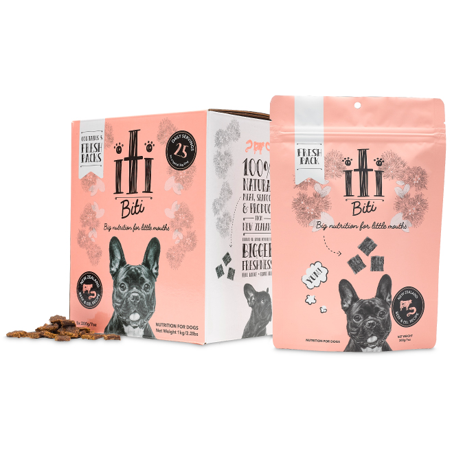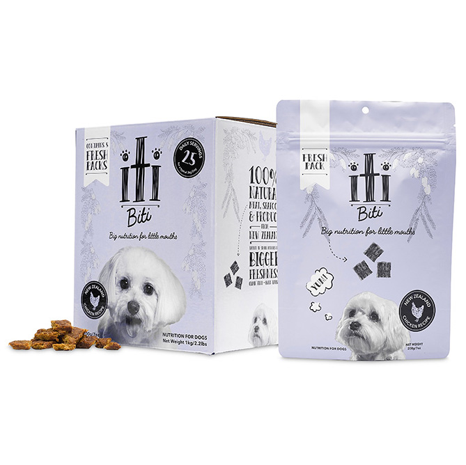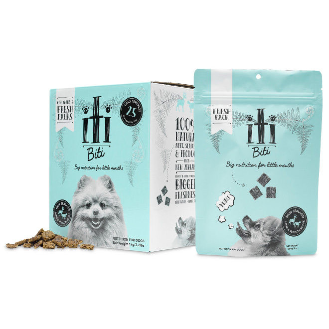 イティのエアドライフードやトリーツは鮮度を保つため小包装され、エージレス(酸化防止剤)が封入されています。